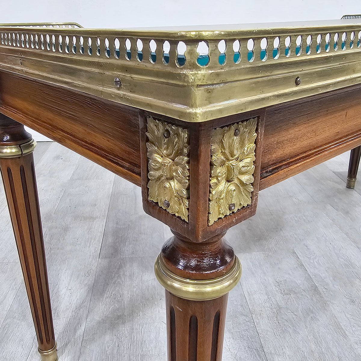 Mesa Ratona Francesa Luis XVI Vidrio Bronce Raíz De Nogal (7086)