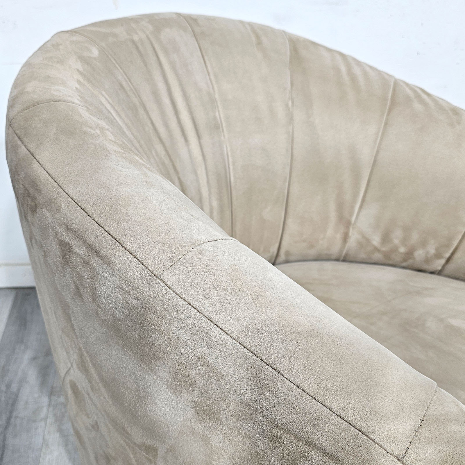 Sillón giratorio Natuzzi Italsofa, modelo Capri, de líneas envolventes y diseño muy cómodo, ideal para living, dormitorio o rincón de lectura. Está tapizado en pana color beige arena, con una textura suave y un tono neutro muy fácil de integrar en ambientes contemporáneos, cálidos o elegantes.